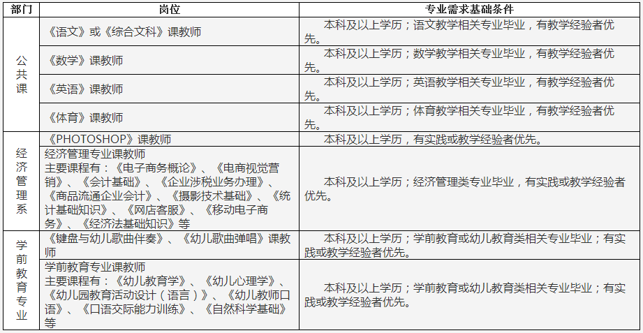 3.本科以上学历,有专业实践经验或相应教师资格证者优先。